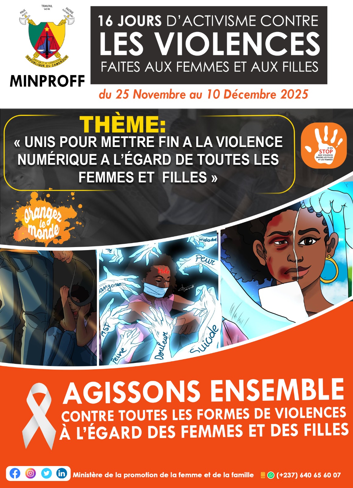 Ce 25 novembre à Yaoundé, le Cameroun a officiellement lancé la 19ᵉ édition de la campagne mondiale « 16 jours d’activisme contre les violences faites aux femmes et aux filles ». Placée cette année sous le thème « Unis pour mettre fin à la violence numérique à l’égard de toutes les femmes et filles », l’initiative vise à sensibiliser sur les abus en ligne et à promouvoir des mesures concrètes de prévention et de prise en charge des victimes.