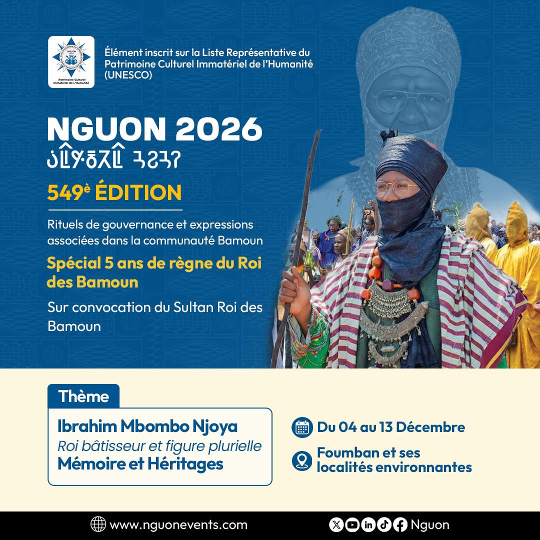 Foumban s’apprête à vibrer au rythme de l’histoire. Du 4 au 13 décembre 2026, la cité royale et ses environs accueilleront la 549e édition du Nguon, l’un des plus anciens rituels de gouvernance d’Afrique centrale. Une édition placée sous le signe de la double célébration : le cinquième anniversaire de règne de Sa Majesté le Sultan El Hadj Mouhammad-Nabil Mforifoum Mbombo Njoya, et un hommage appuyé à son illustre prédécesseur, Ibrahim Mbombo Njoya, à travers le thème : « Roi bâtisseur et figure plurielle : mémoire et héritages».